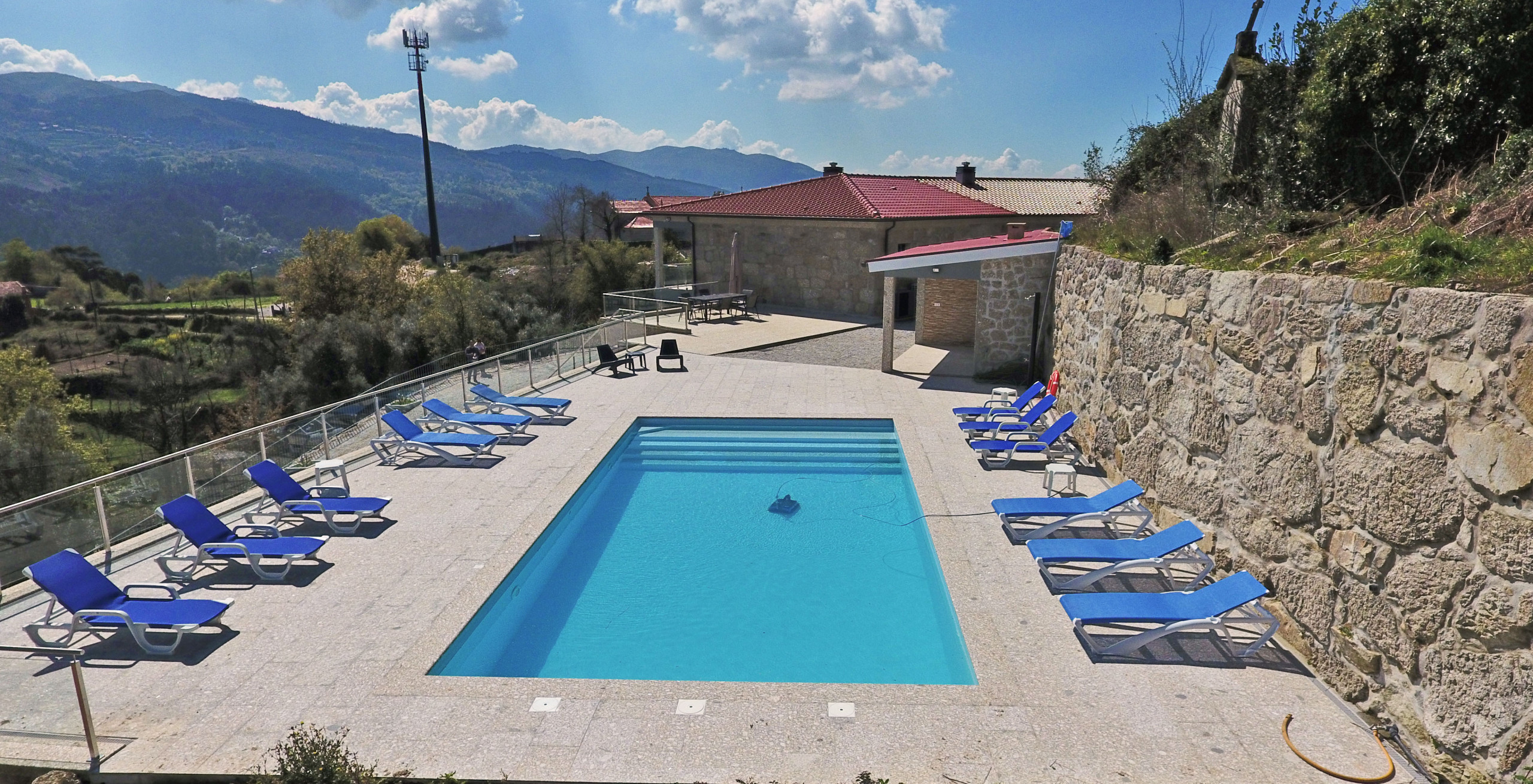 A casa dispõe de aquecimento por bomba de calor, lareira para noites mais frescas, TV com canais internacionais e WiFi. O estacionamento privativo permite acomodar 2 viaturas.