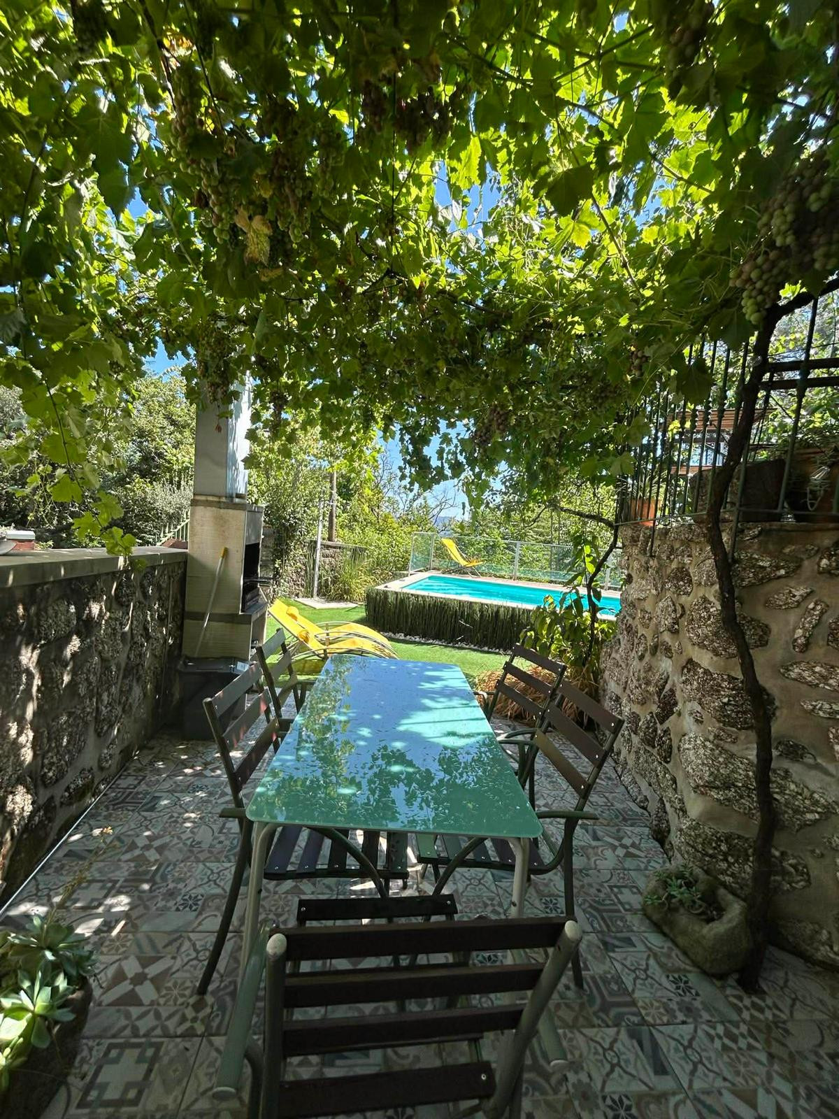No espaço exterior, a piscina privada permite desfrutar dos dias mais quentes enquanto relaxa entre amigos ou em família! Possui ainda churrasqueira e espaço exterior para refeições, jardim, lareira, acesso internet (wifi) e varanda com vista montanha.