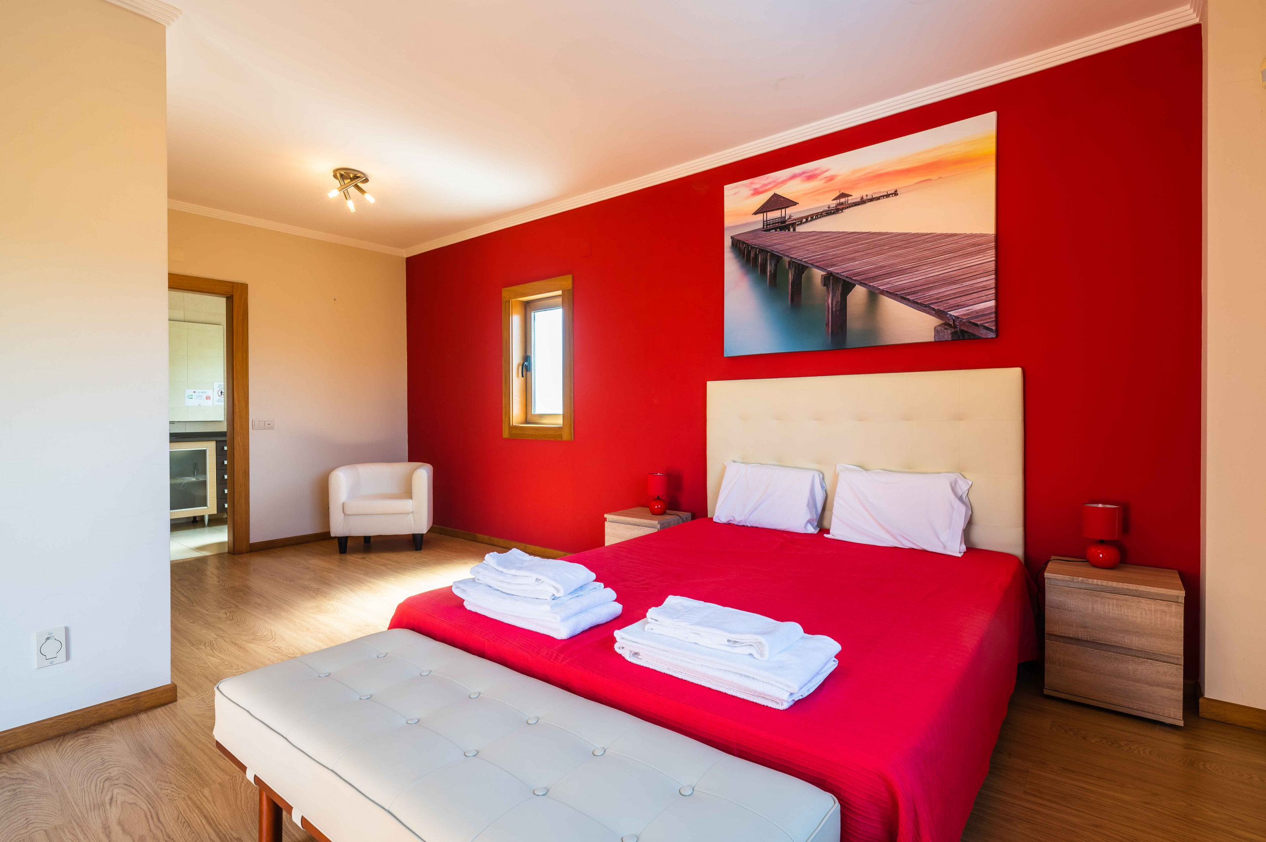 The villa in Albufeira has 3 bedrooms and a capacity for 6 people.