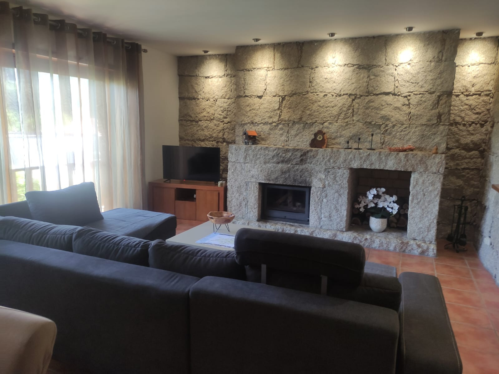 El ambiente acogedor se complementa con una acogedora chimenea en la sala de estar, perfecta para relajarse después de un día de aventuras.
