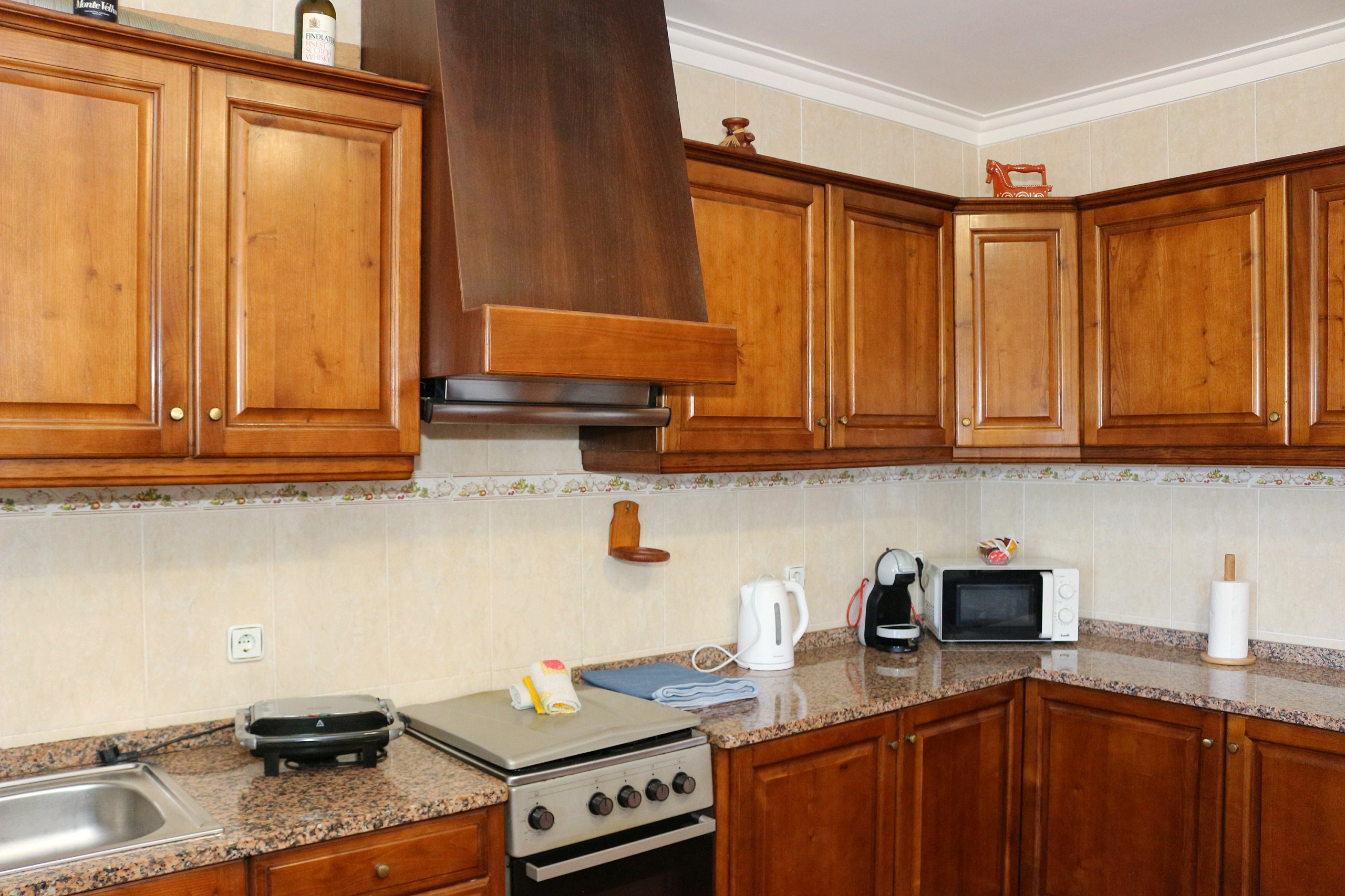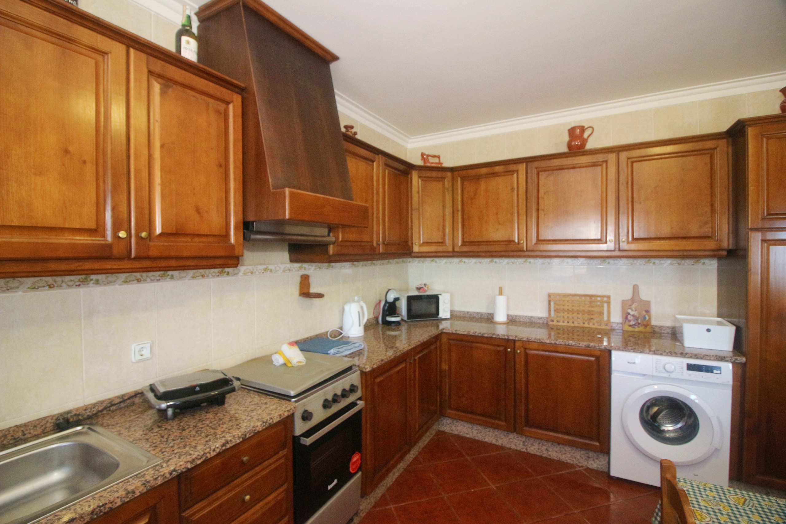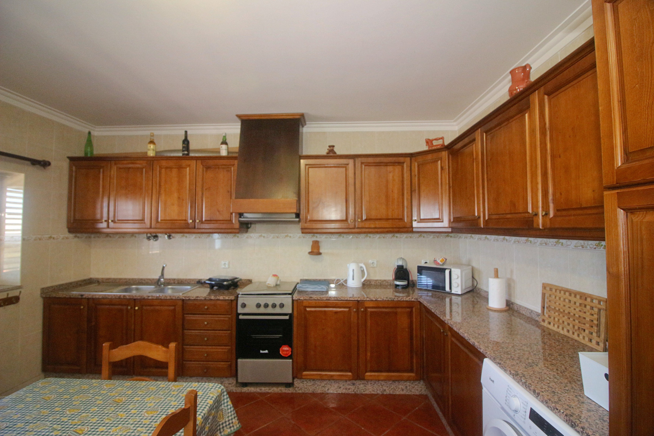 La cuisine américaine entièrement équipée est un véritable point fort de la maison. Elle dispose de tous les appareils électroménagers essentiels, notamment un réfrigérateur, un lave-linge, un four, un micro-ondes, une machine à café, un grille-pain et une bouilloire. Préparer des repas en famille ou entre amis sera un plaisir dans cet espace fonctionnel et bien pensé.